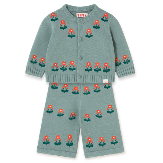 TINY COTTONS Flowers Baby Cardigan Set- Sage