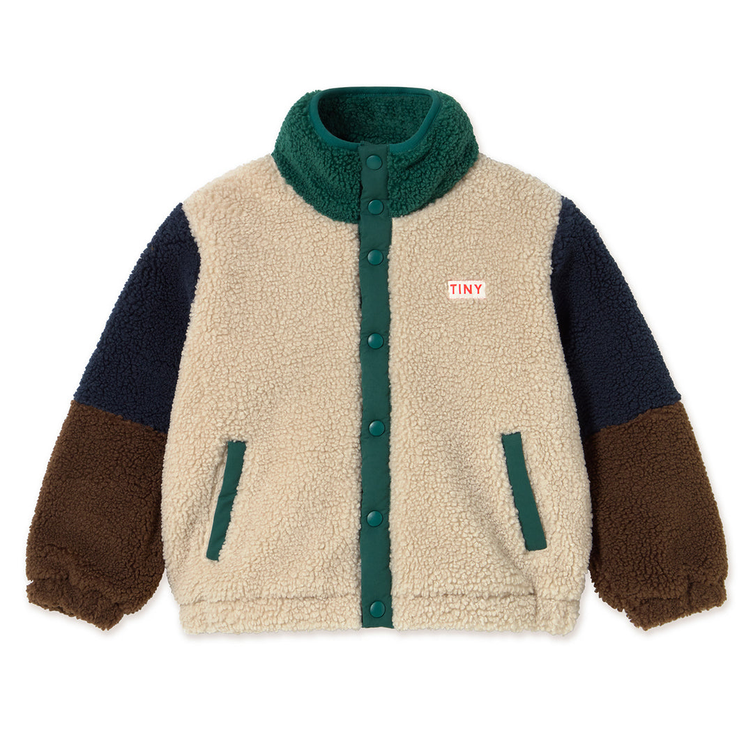 TINY COTTONS Colorblock Polar Sherpa Jacket - Dark Green