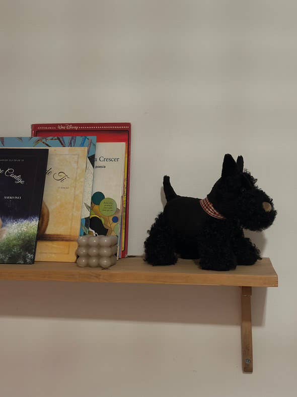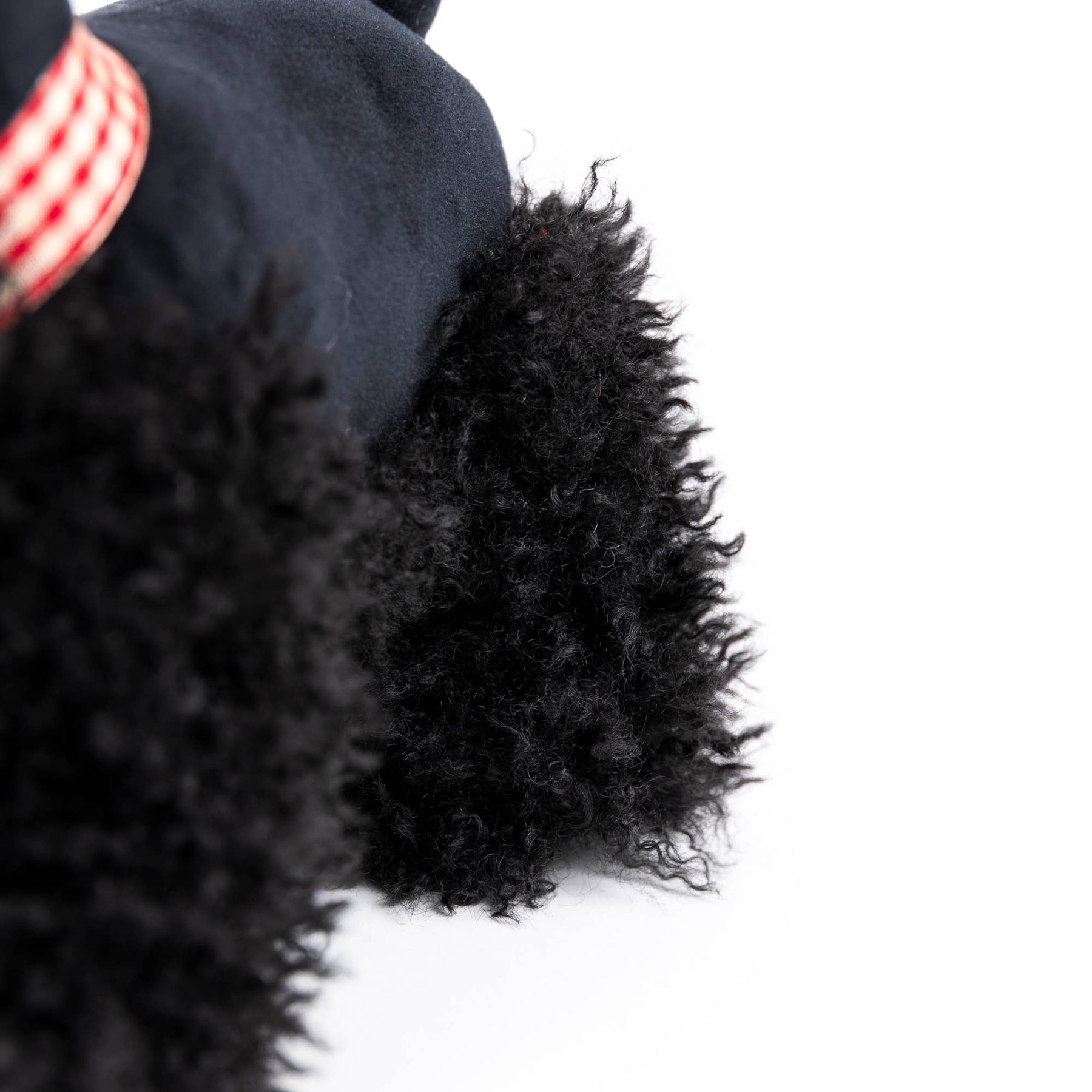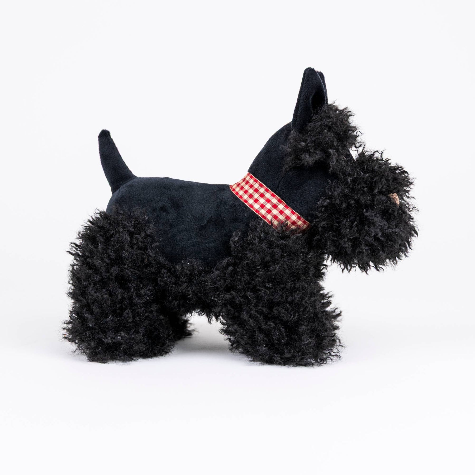 Here comes Walter, with his soft black fur. A unique, vintage British look, and a great friend of Lola, the white scotty. Walter will be so happy to follow children everywhere on all their adventures. Walter has a small red checkered collar and stands on his own!