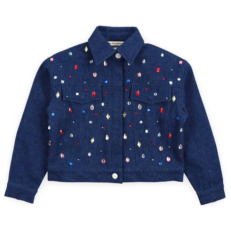THE NEW SOCIETY Mia Rhinestone Jacket - Blue Denim