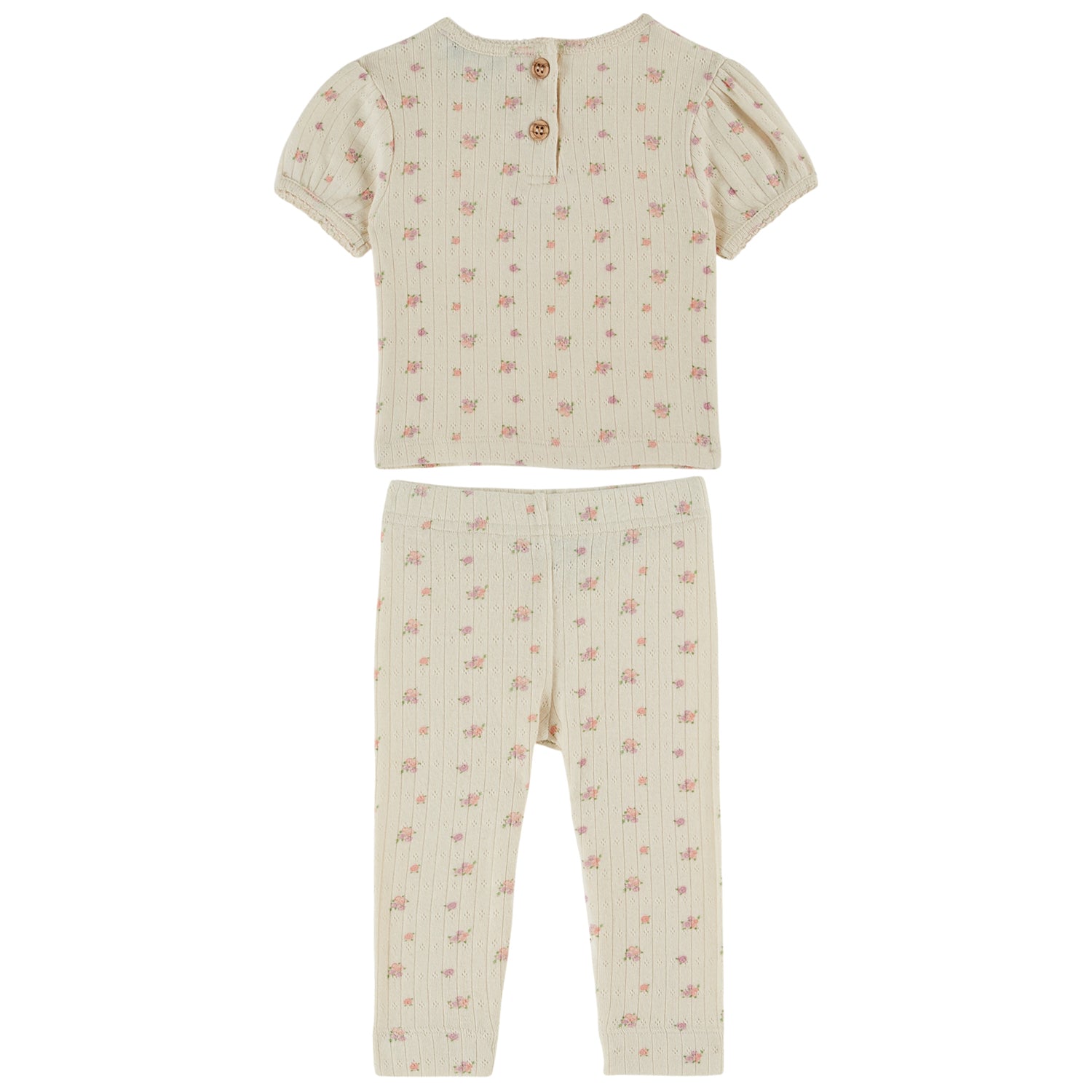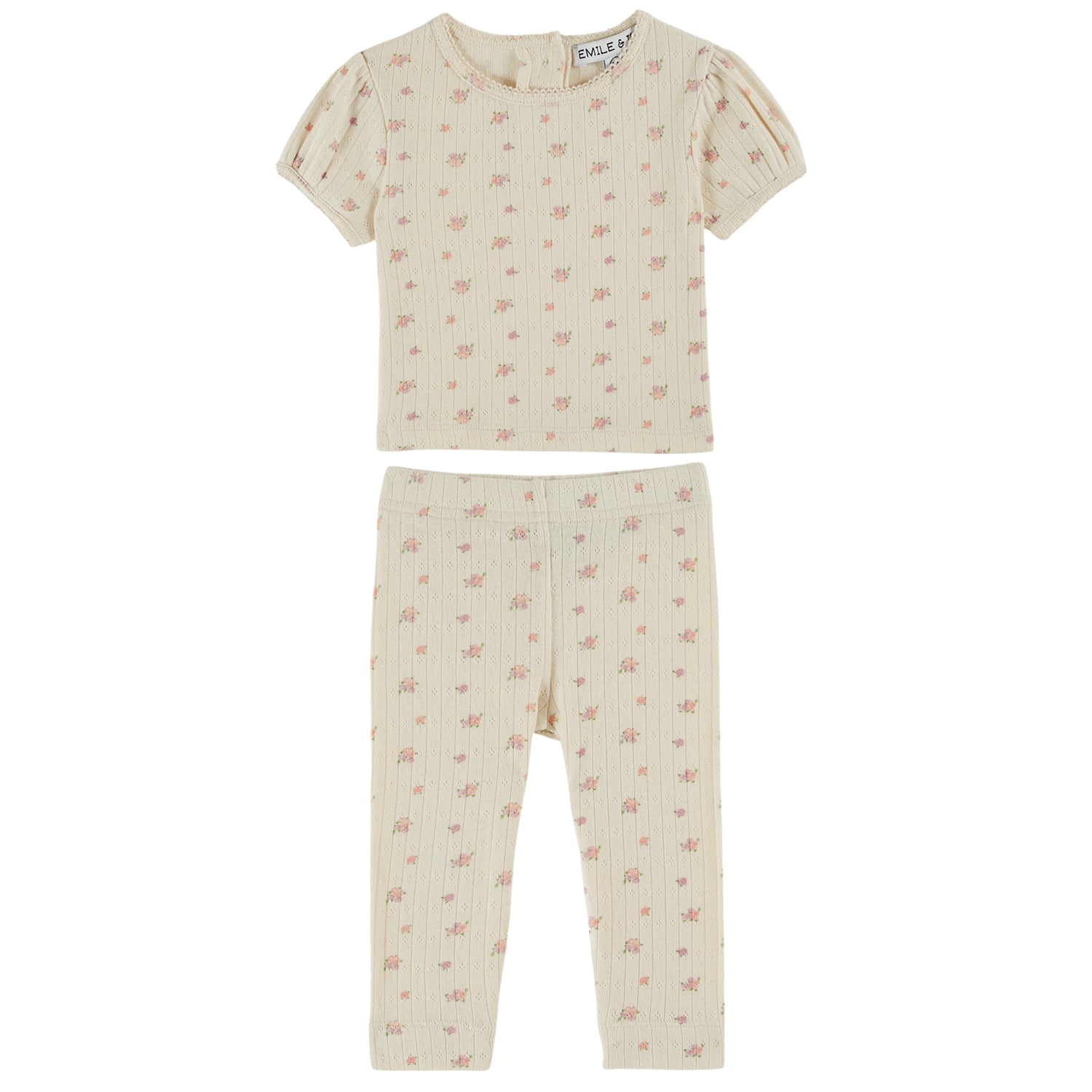 The Printed Pointelle Baby Set in Fantasia by Émile et Ida is a delicate two-piece ensemble crafted from soft pointelle cotton for breathable comfort and a gentle feel against baby’s skin.