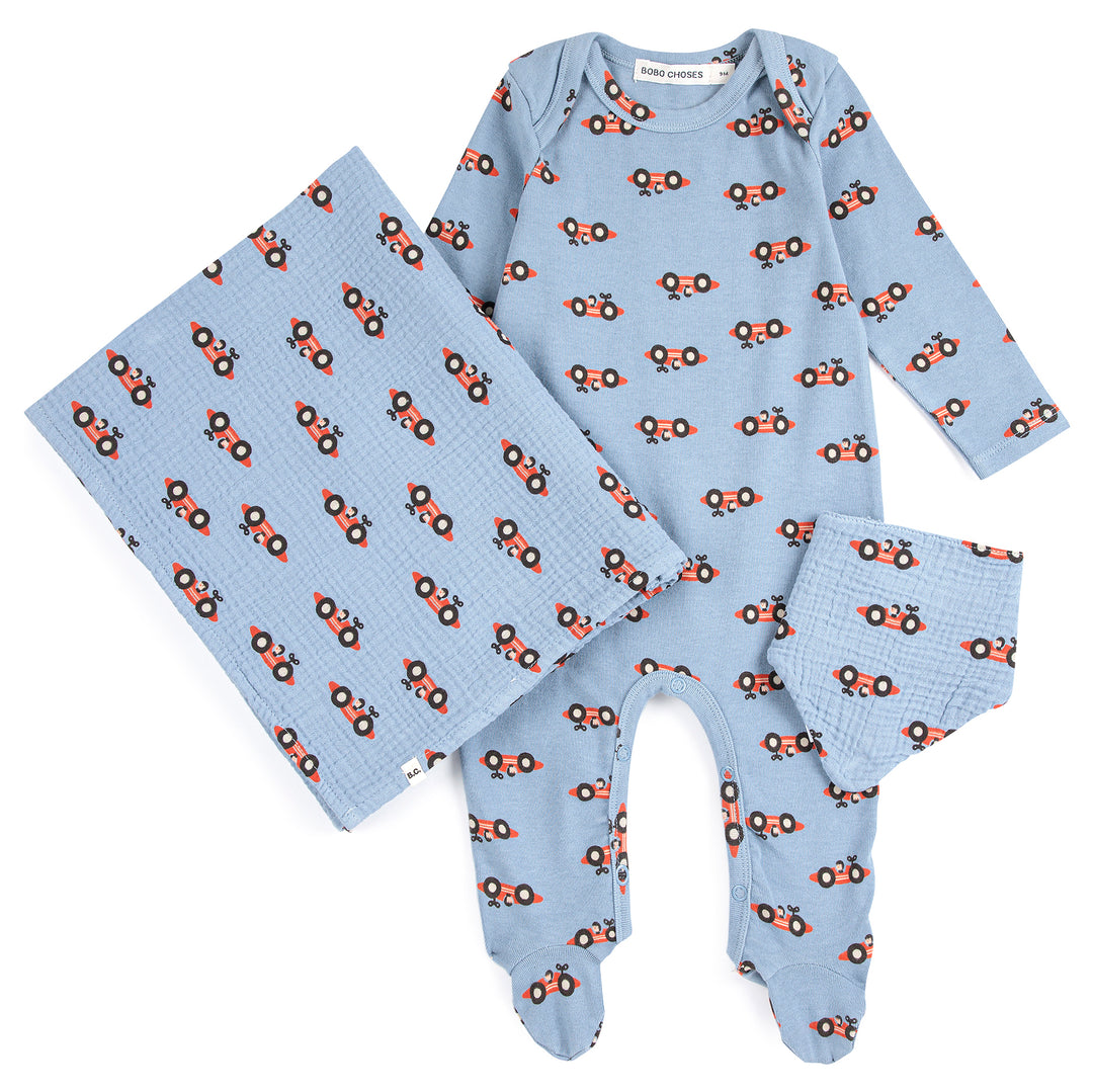 BOBO CHOSES Racing Car All Over Gift Set - Light Blue