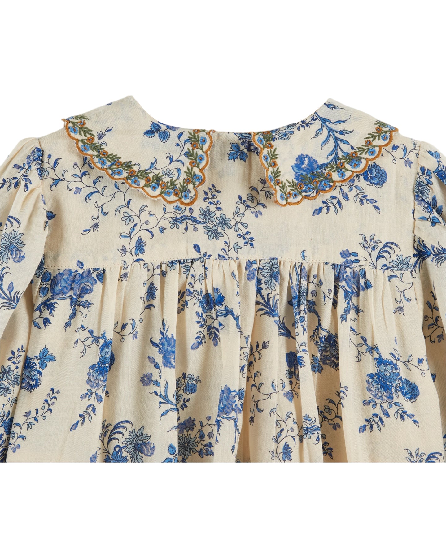 Kid-Girl-Embroidered Collar Smocked Blouse - Orchid Bleu-AC066-ORCHID BLEU-|-emile et ida