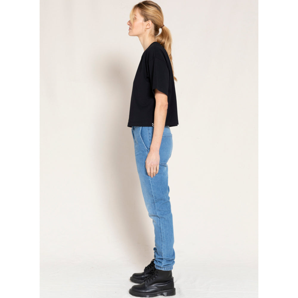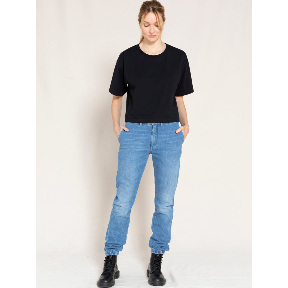 Chino Fit Pants in 100% cotton and with elastic bottom.