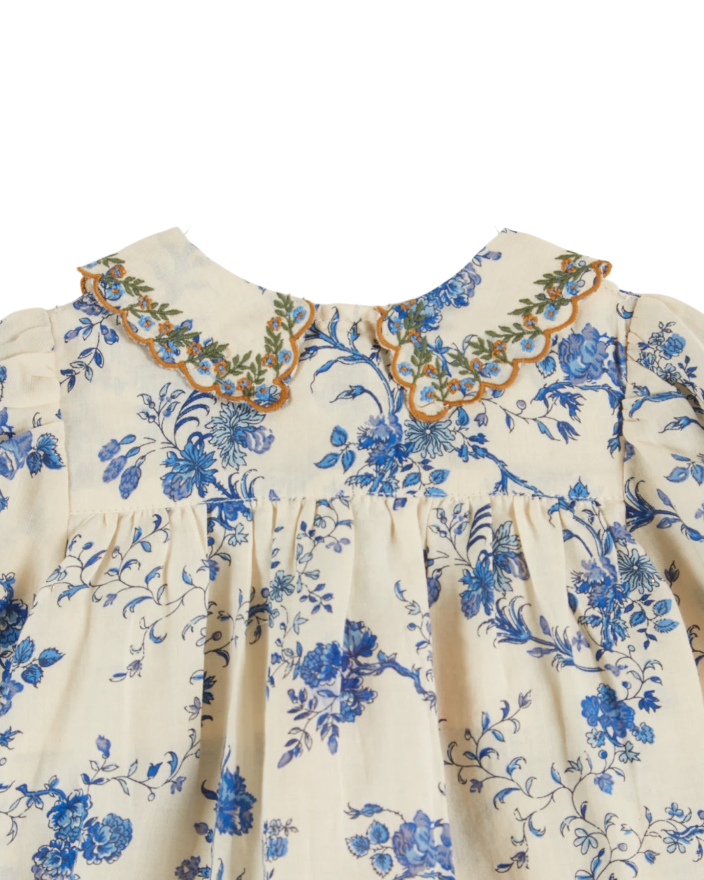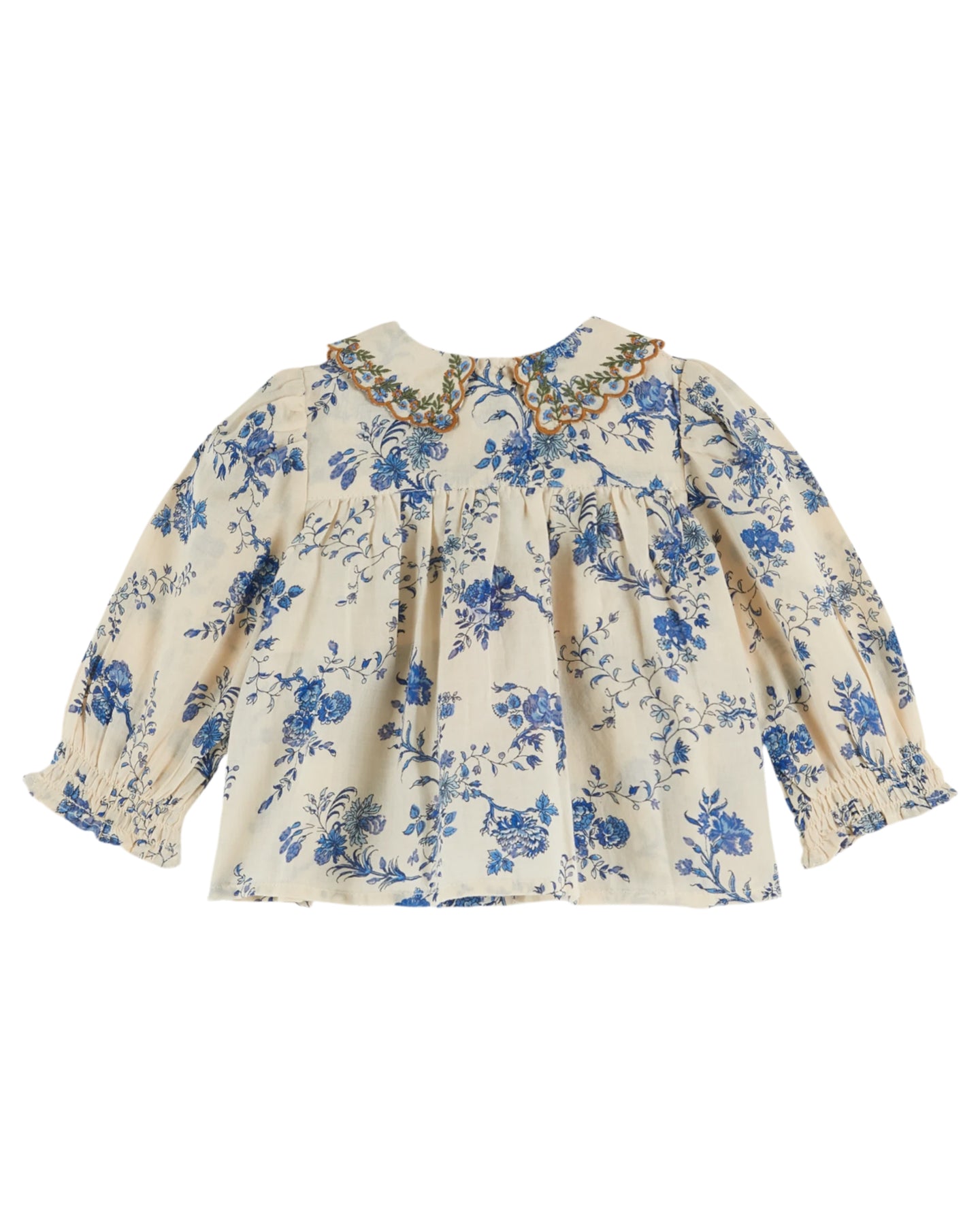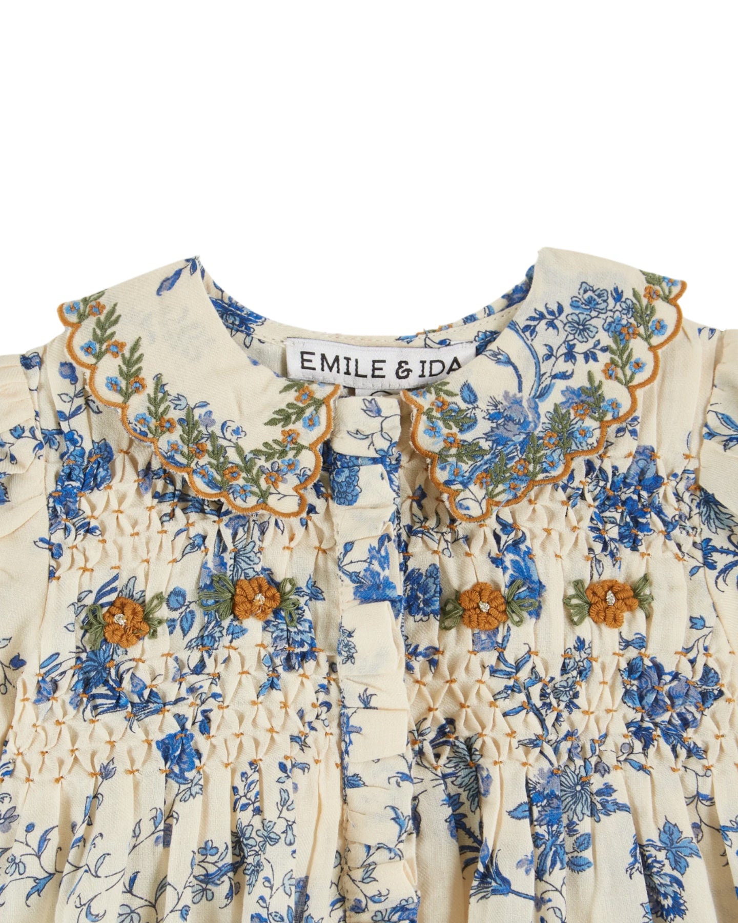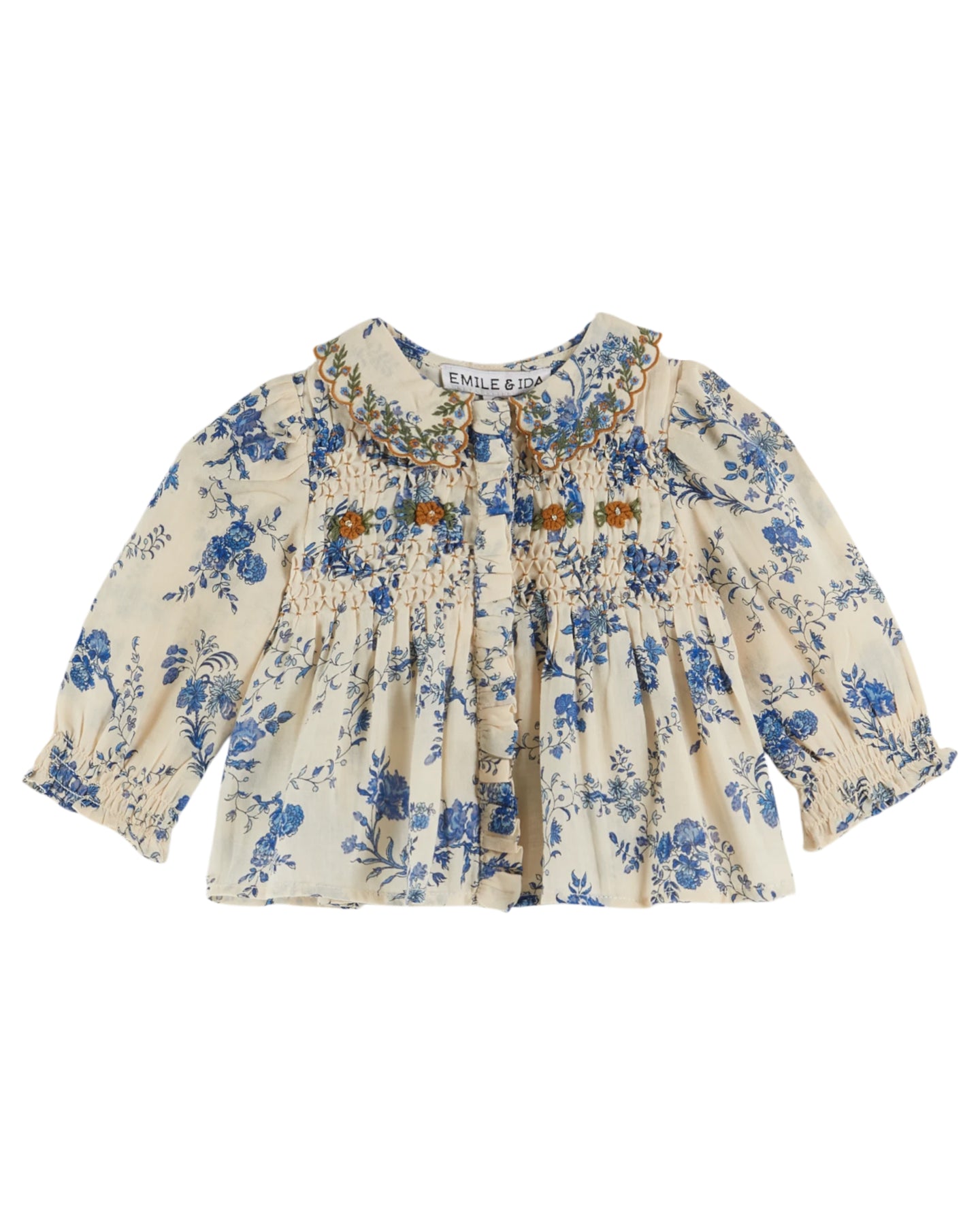 EMILE ET IDA Embroidered Collar Smocked Baby Blouse - Orchid Bleu