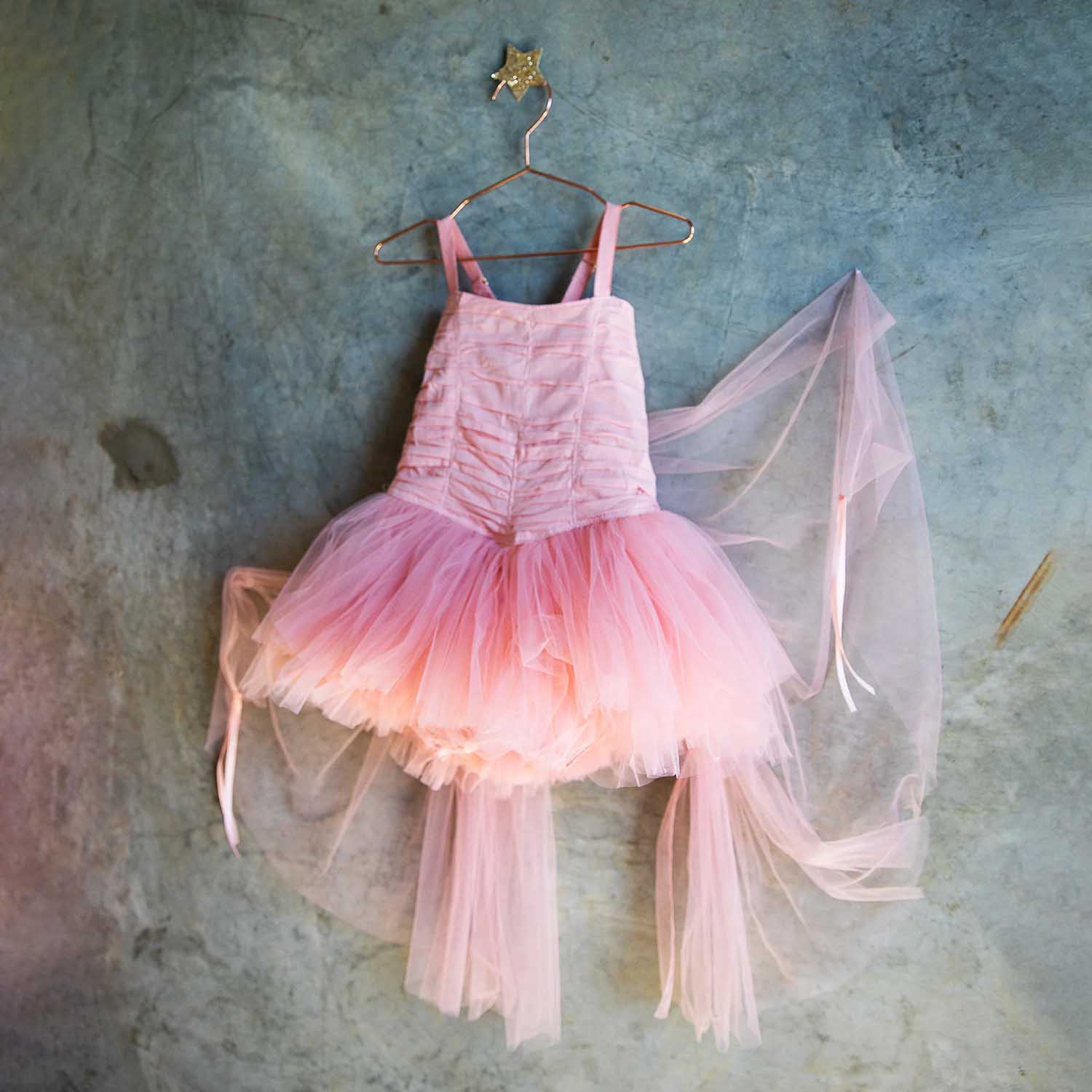 An extra special outfit for those occasions where a tutu just isn’t enough, this one has built-in wings with satin ribbon ties to keep them fluttering at the wrist.