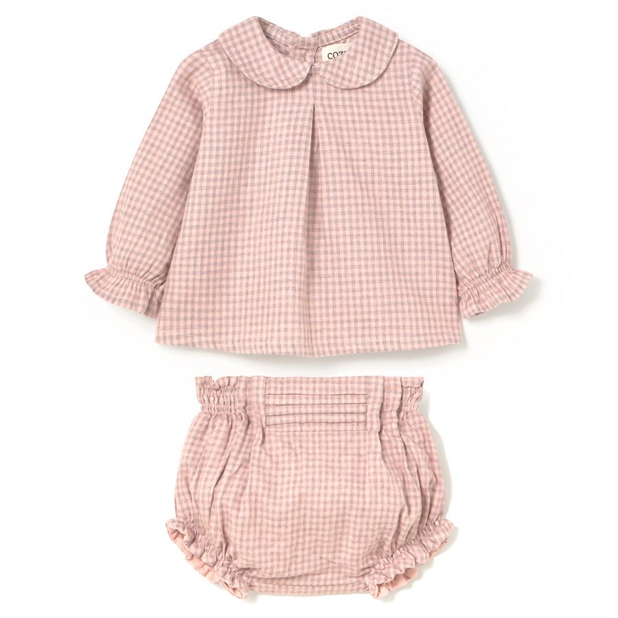 MY LITTLE COZMO Vico Mini Gingham Flannel Baby Set - Silver Pink