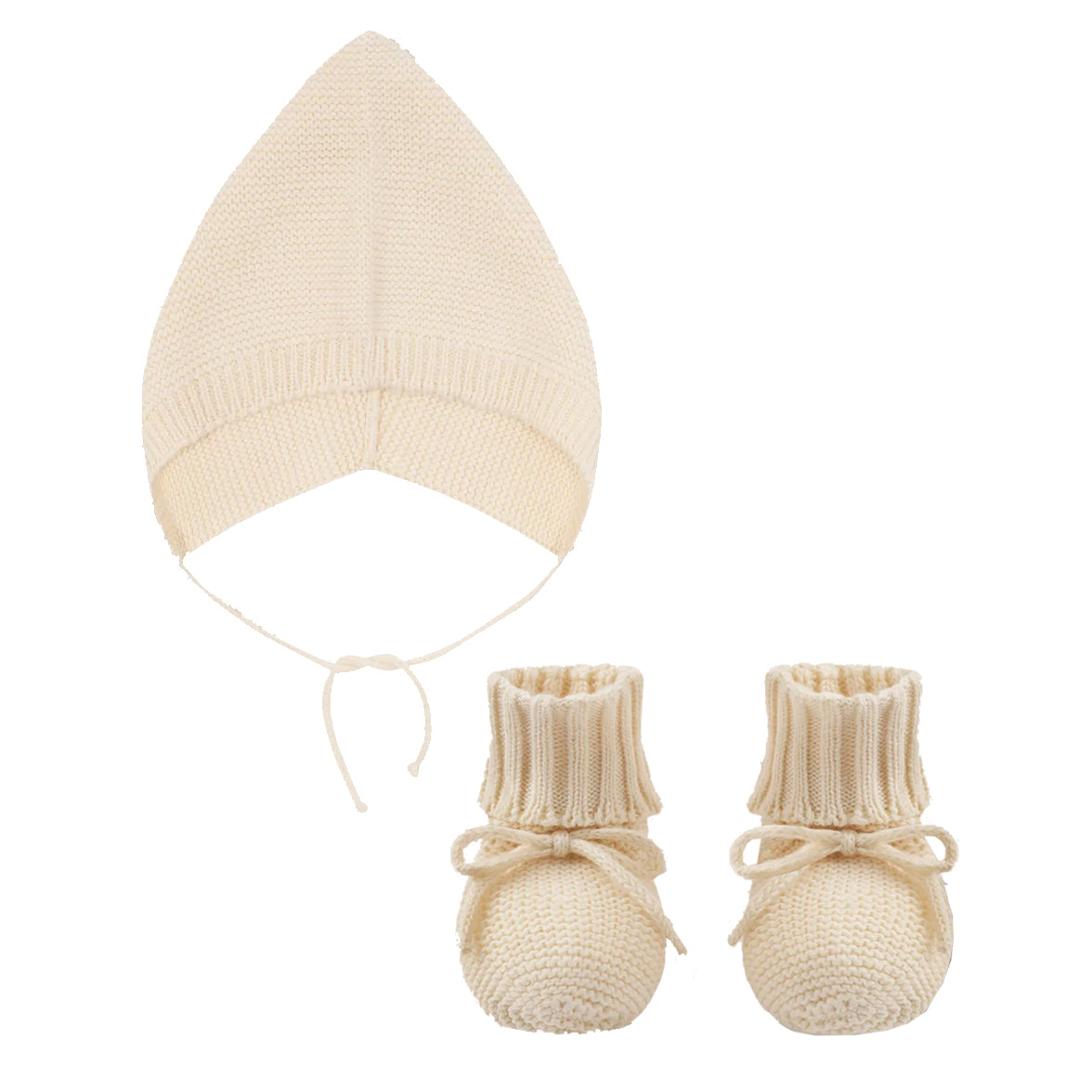 ORGANIC ZOO Undied Cotton Hat And Booties Set - Ecru