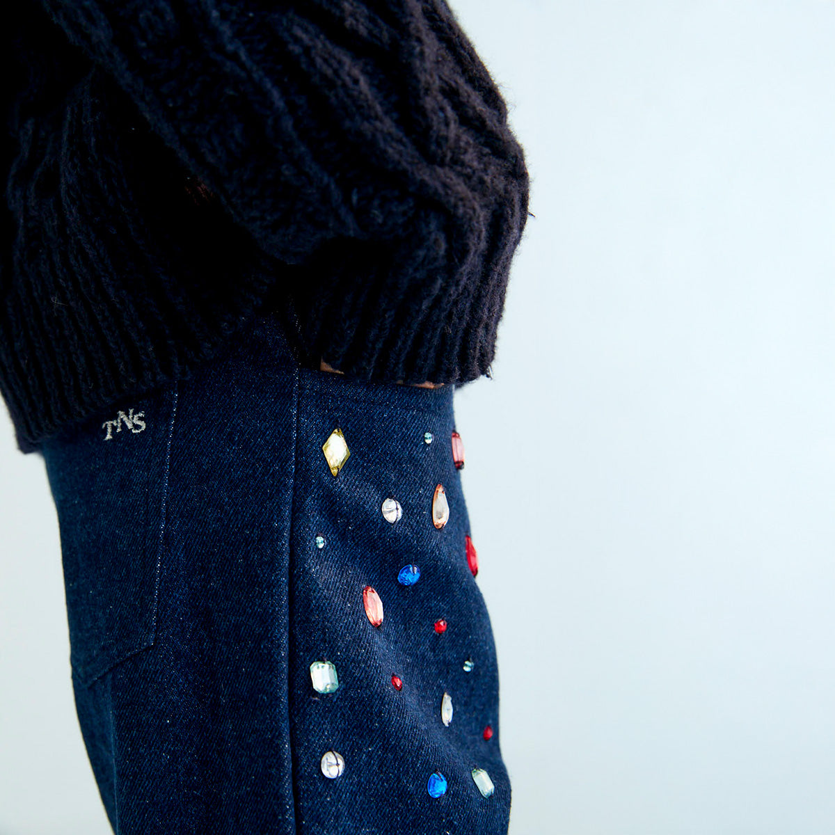 THE NEW SOCIETY Mia Rhinestone Pants - Blue Denim